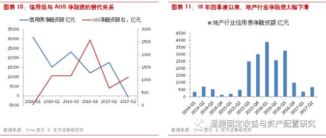 由于 ABS 信用资质与主体关联度低,债市波动会对低等级主体发债造成较大影响。但是对于基础资产质量尚可的ABS产品,市场波动对其发行影响相对较小。17年以来,债券二级市场收益率持续走高,带动一级市场信用债发行困难,上半年已经有 403 只信用债取消或推迟发行,涉及发行金额 3182 亿元。ABS 发行受到的影响较小,年初以来仅有一只 ABN 于 4 月推迟发行,在一个月后成功发行。