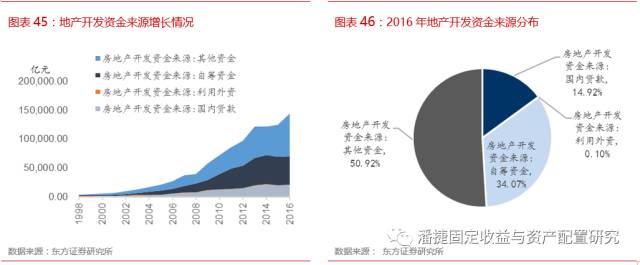 随着我国货币政策稳健化与全球货币政策拐点来临,流动性收紧,地产融资成本也在逐渐上升。地产融资监管方面,2016 年来一行三会陆续出台政策收紧地产融资,加之监管趋严下银行绕道投资非标的模式难以持续,房地产国内融资渠道陆续受堵,2016 年地产开发资金来源中国内贷款占比仅为 14.92%,创 1998 年来新低。