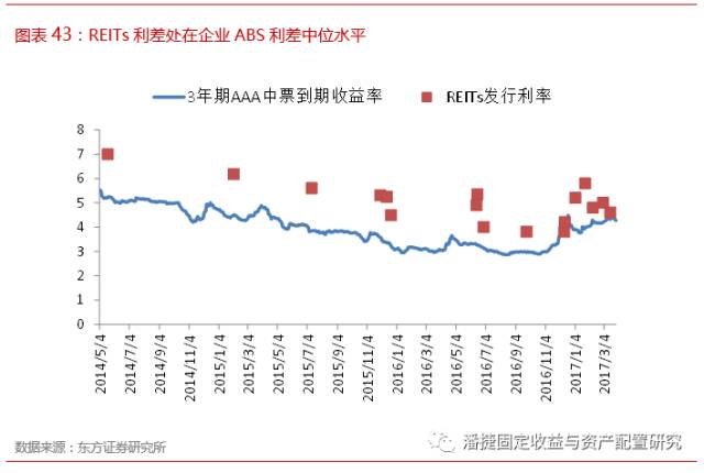 我国已发行 REITs 大多具有股债混合型特点,从市场发行利率来看,相对于更多依靠原始权益人信用的物业费 ABS 产品而言,类 REITs 产品发行利率与原始权益人的信用水平关联度不高,在整体企业 ABS 市场中利率处于中位水平。