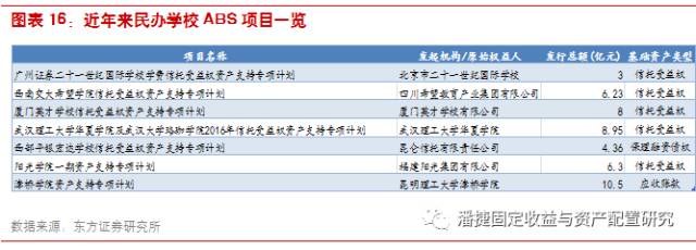 近年来发行的学校项目 ABS 的发起机构主要为中西部民办高校,我国民办高校所需办学经费一般来自于自筹资金,相对来讲办学资金压力较大。由于缺乏资金和便捷的融资方式,民办高校在教育设施,校园建设以及教师资源上颇为弱势,发展受限。 ABS 的出现将有效改善民办学校融资难的问题,促进民办教育的发展和高等教育的均衡。