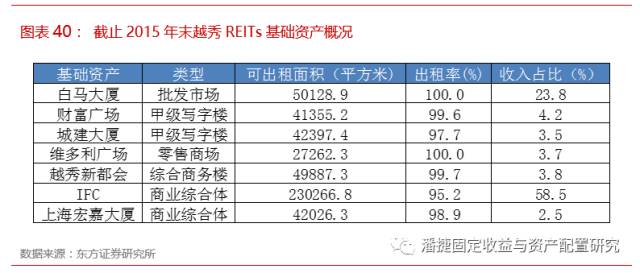 其基础资产包括广州国际金融中心、白马大厦、财富大厦、城建大厦、维多利广场、新都会广场和上海的宏嘉大厦共七个商业物业。由此开创了国内物业的新型融资模式。下图为越秀 REITs 中的基础资产概况: