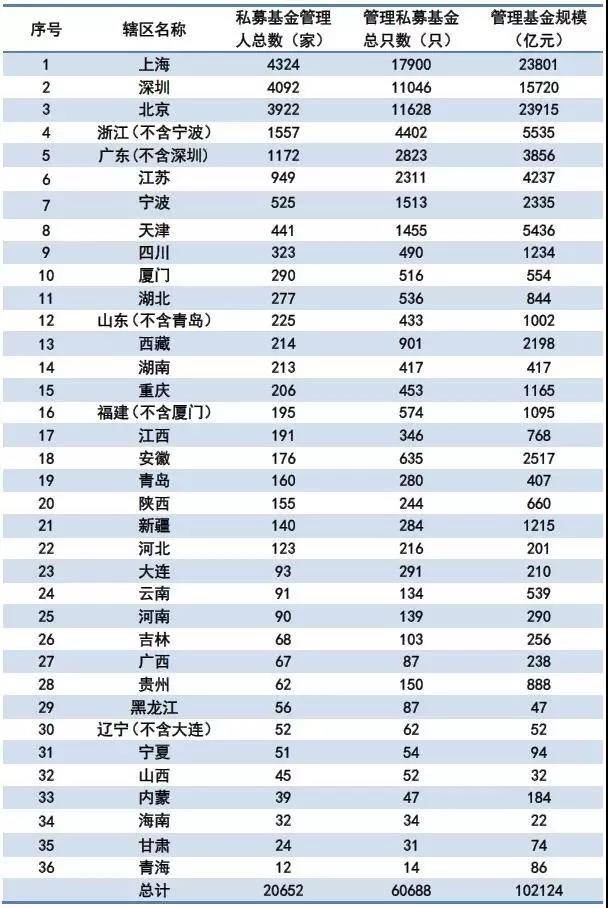 10万亿私募\"扎堆\"图:北京+上海+深圳=总规模62%