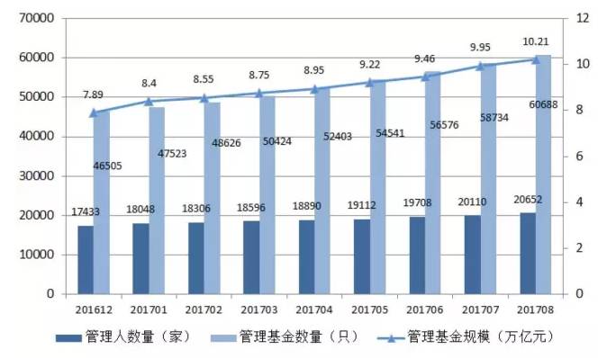 截至8月底,已登记的私募基金管理人有20652家,较上月增加542家;已备案私募基金60688只,较上月增加1954只,管理基金规模为10.21万亿元,较上月增加2600亿元。这也是今年以来,私募基金实际管理规模首次超过10万亿元。