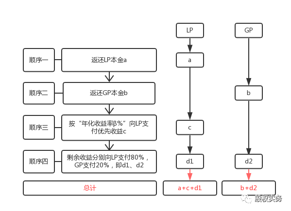 三、向LP支付优先收益(例如,门槛收益率=年化8%内部收益率);